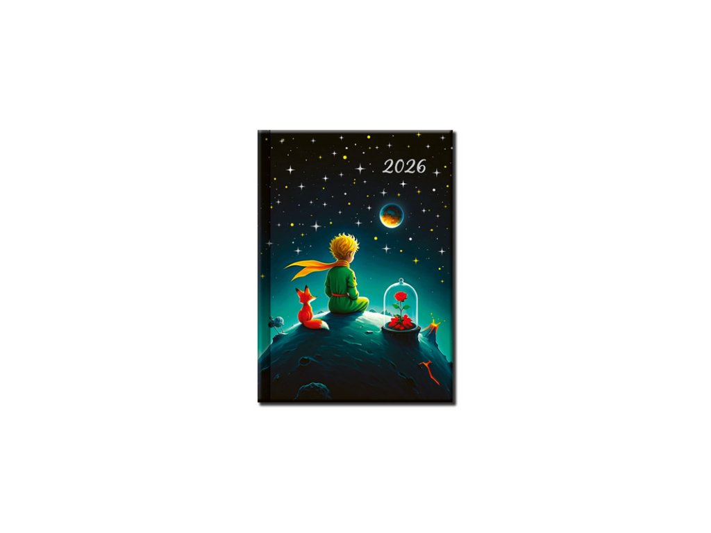 Originálna šálka s podšálkou s krásnym dizajnom Malého princa na lúke, s diárom na rok 2026. Foto s diárom 2025 je ilustračné.