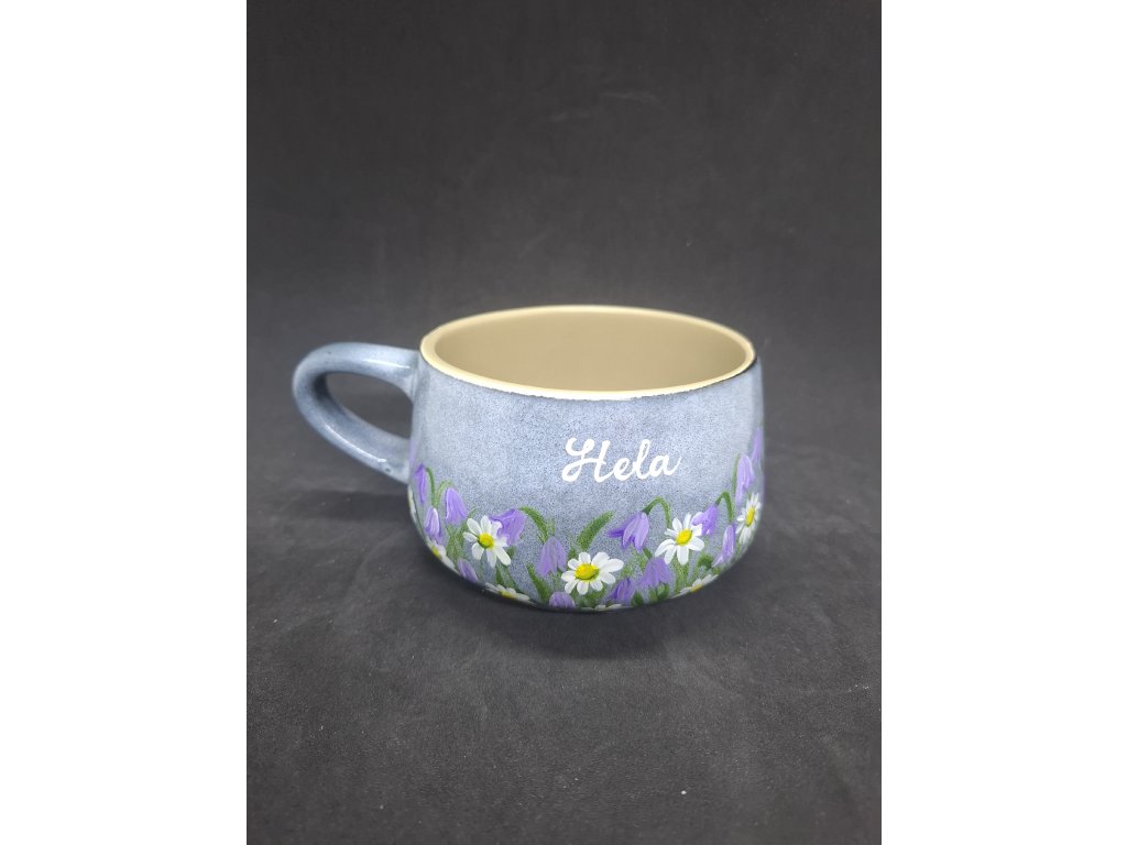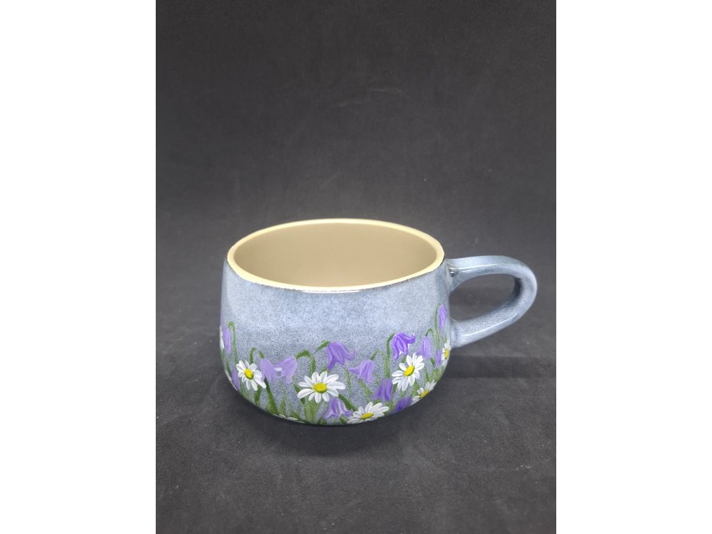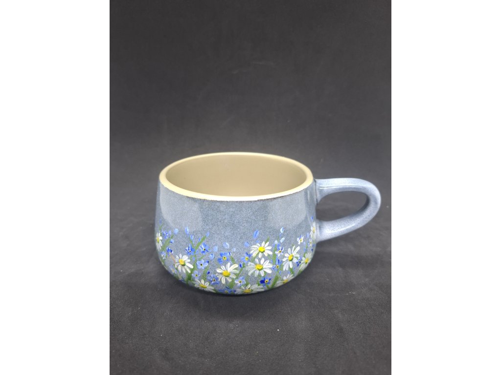 Ručne maľovaný keramický hrnček s motívom lúky.